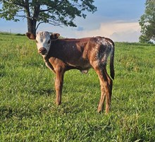 Maybe the best young bull we’ve ever raised. Huge calf extreme backward horn. His dam and granddam produce home runs and are milking machines.