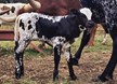 FLASHY black and white heifer out of our huge bodied WH Fine Iron and the late PCC Dark Spell who had just broken 85-1/2" TTT and was 59-1/2" at the hip before he unexpectedly died at 3-1/2 years of age.. He was tall, smooth, and had an excellent temperament.